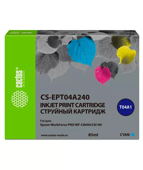 Картридж струйный Cactus CS-EPT04A240 T04A2 голубой (85мл) для Epson WorkForce Pro WF-C8190, WF-C8690