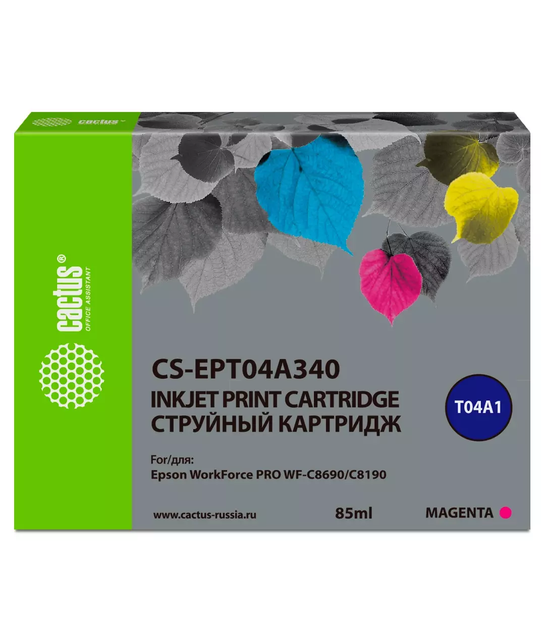 Картридж струйный Cactus CS-EPT04A340 T04A3 пурпурный (85мл) для Epson WorkForce Pro WF-C8190, WF-C8690