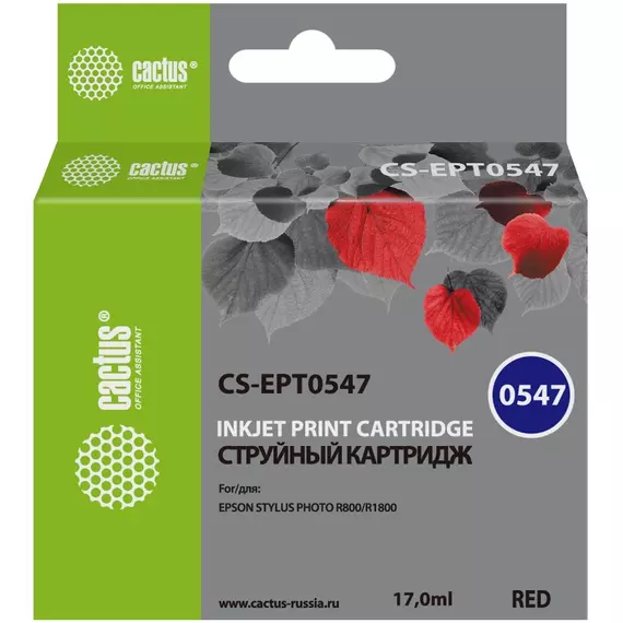Картридж струйный Cactus CS-EPT0547 красный (16.2мл) для Epson Stylus Photo R800/R1800 с чипом