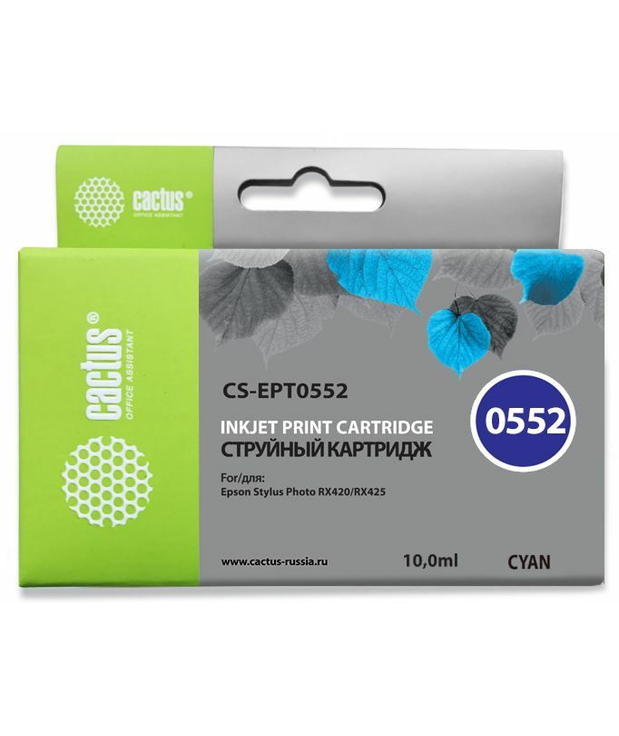 Картридж струйный Cactus CS-EPT0552 голубой (10мл) для Epson Stylus RX520/Stylus Photo R240 с чипом