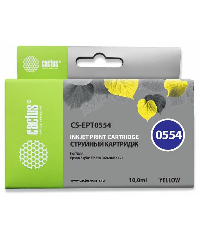 Картридж струйный Cactus CS-EPT0554 желтый (16мл) для Epson Stylus RX520/Stylus Photo R240 с чипом