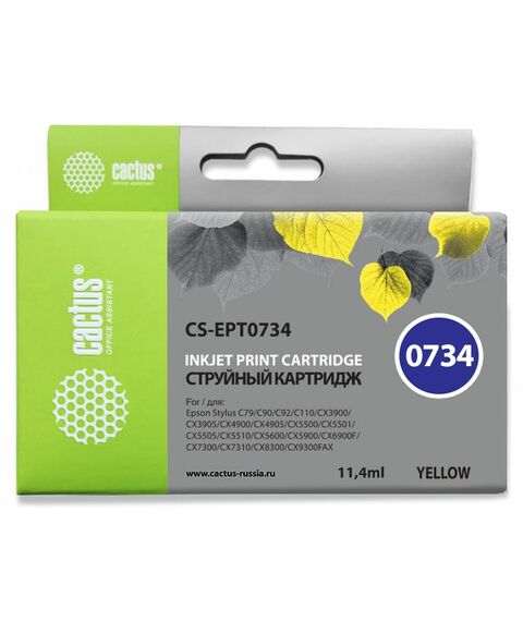 Картридж струйный Cactus CS-EPT0734 желтый (11.4мл) для Epson Stylus С79/C110/СХ3900/CX4900/CX5900/CX7300/CX8300/CX9300 с чипом