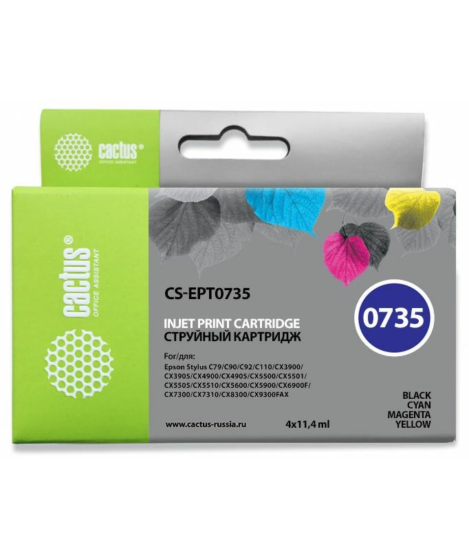 Картридж струйный Cactus CS-EPT0735 черный, голубой, пурпурный, желтый набор (45.6мл) для Epson Stylus С79/C110/СХ3900/CX4900 с чипом