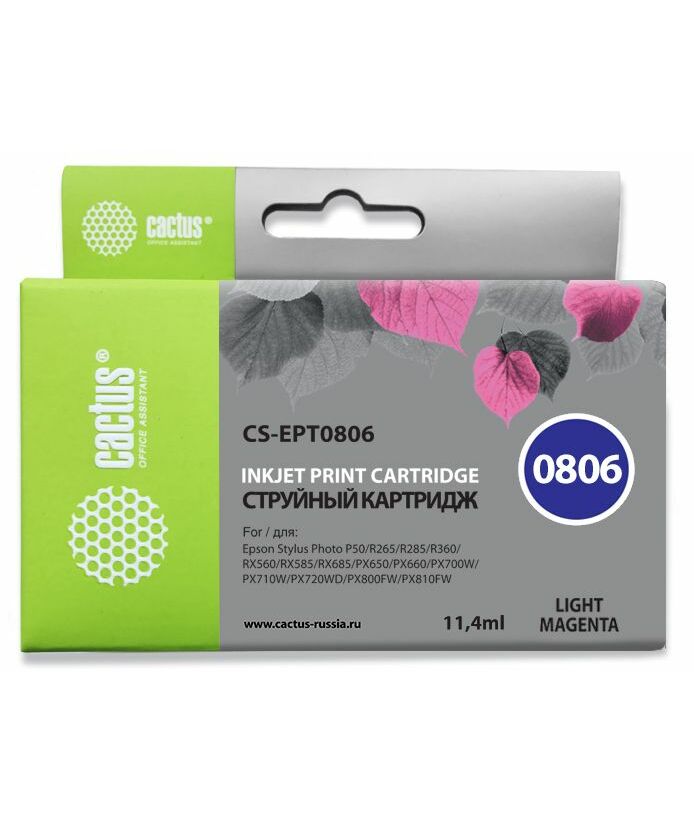 Картридж струйный Cactus CS-EPT0806 светло-пурпурный (11.4мл) для Stylus Photo P50/PX650/PX660/PX700/PX700W/PX710/PX710W/PX720/PX720WD/PX800/PX800FW/PX810/PX810FW/PX820/PX820FWD/R265/R285/R360/RX560/RX585/RX685 с чипом