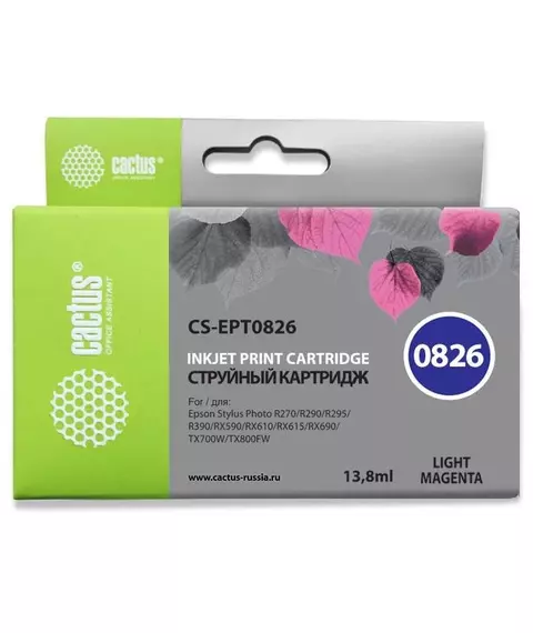 Картридж струйный Cactus CS-EPT0826 светло-пурпурный (13.8мл) для Epson Stylus Photo R270/290/RX590 с чипом