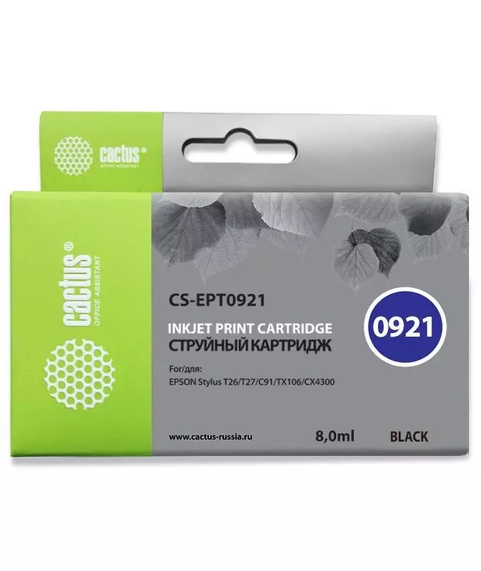 Картридж струйный Cactus CS-EPT0921 черный (8мл) для Epson Stylus C91/CX4300/T26/T27/TX106/TX109/TX117/TX119 с чипом