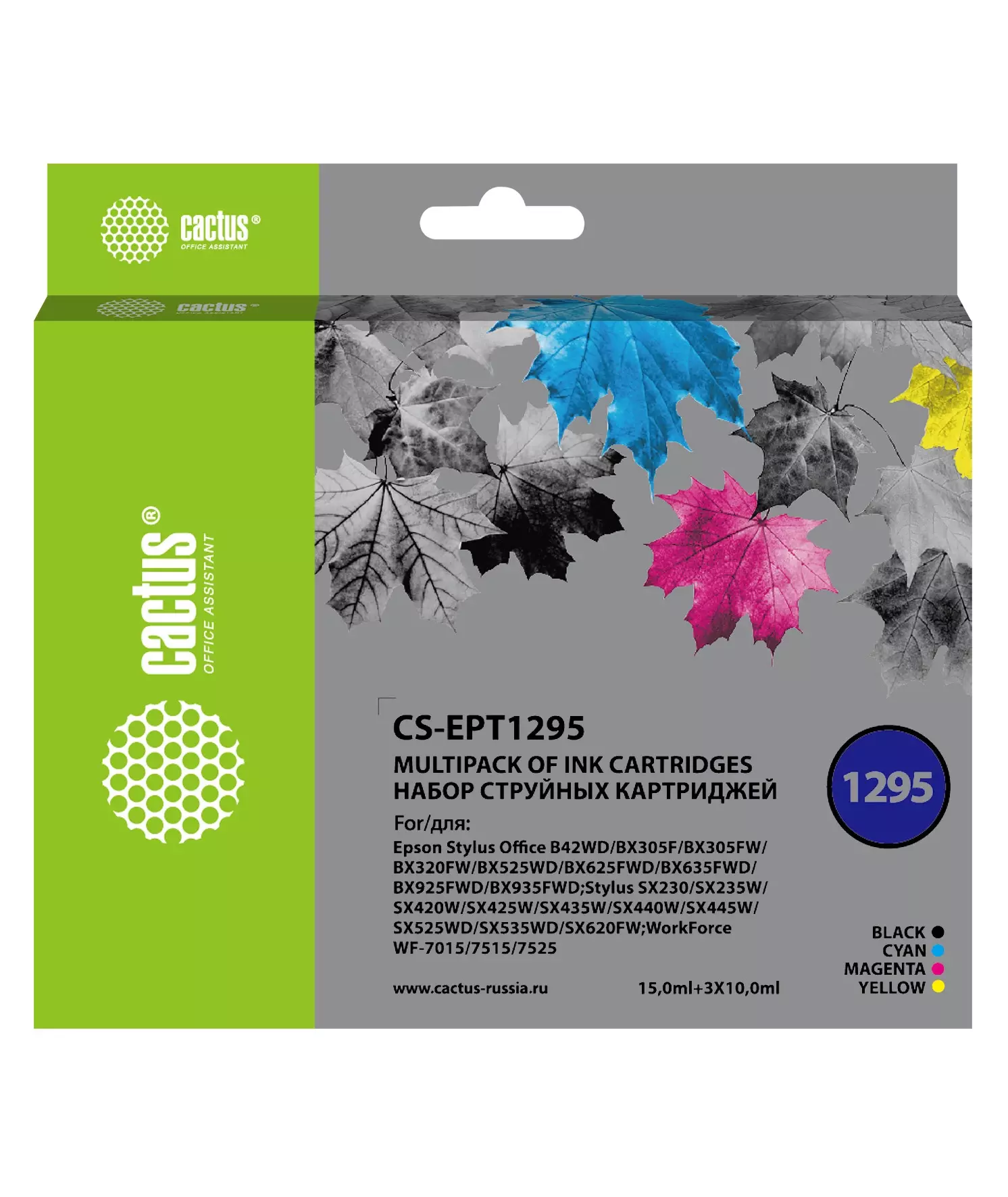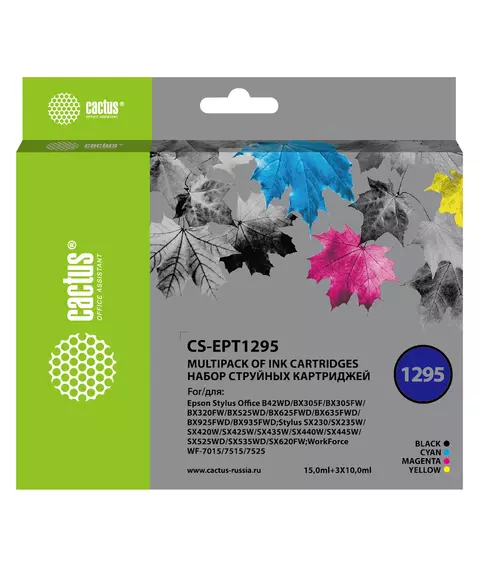 Картридж струйный Cactus CS-EPT1295 черный/голубой/желтый/пурпурный набор (45мл) для Epson Stylus Office B42/BX305/BX305F/BX320/BX525/BX625/SX420/SX425/SX525/SX620 с чипом