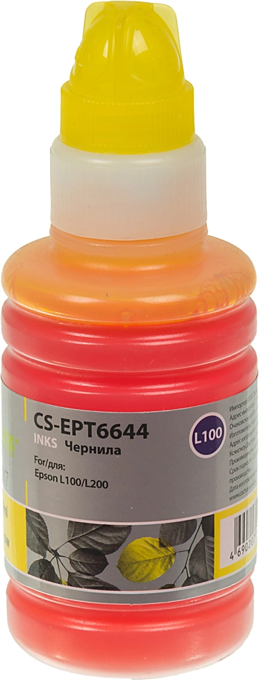 Чернила Cactus CS-EPT6644 желтый 100мл для L100/L110/L120/L132/L200/L210/L222/ L300/L312/L350/L355/L362/L366/ L456/L550/L555/L566/L1300