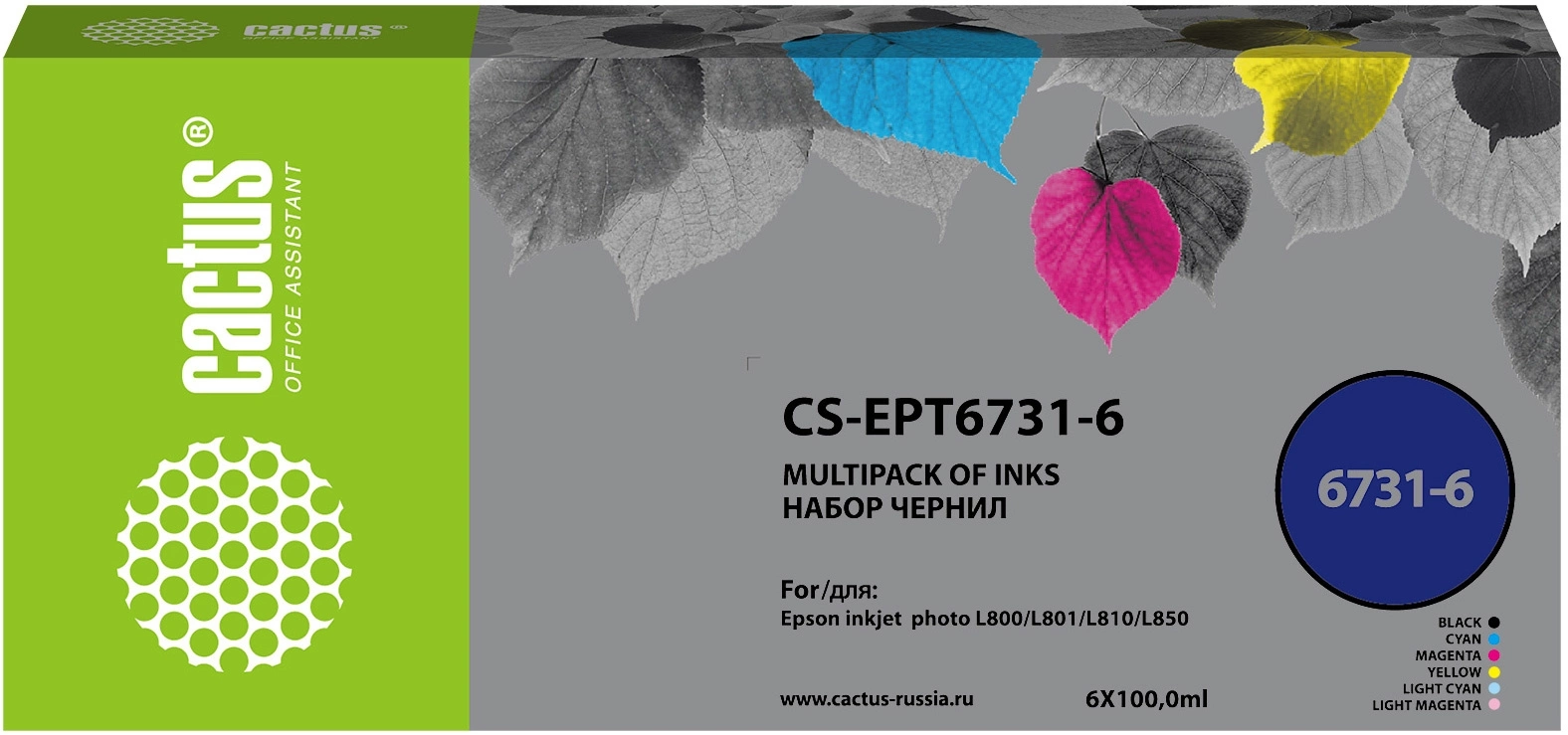 Чернила Cactus CS-EPT6731-6 T673 многоцветный набор 6x100мл для Epson L800/L810/L850/L1800