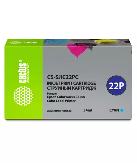 Картридж струйный Cactus CS-SJIC22PC голуб.пигм. (34мл) для Epson ColorWorks C3500 с чипом