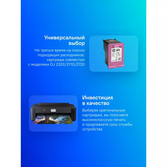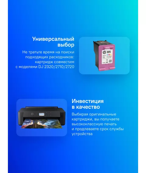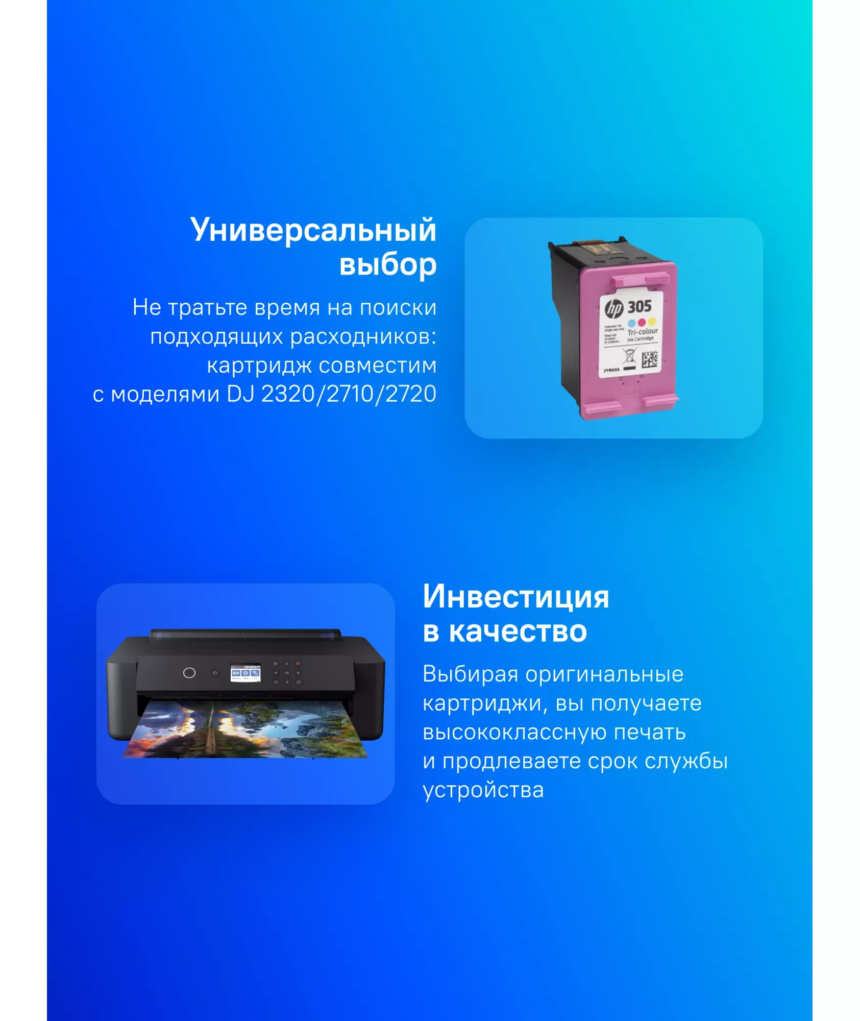Картридж струйный HP 3YM60AE №305 многоцветный (100стр.) (2мл) для DJ 2320/2710/2720