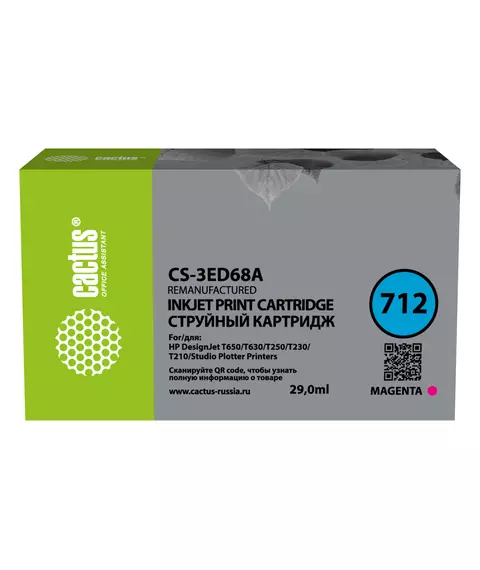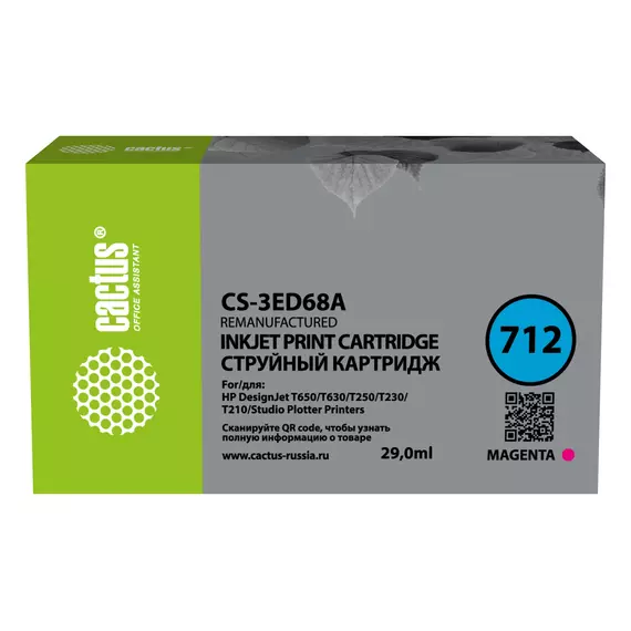 Картридж струйный Cactus CS-3ED68A пурпурный (29мл) для HP DJ T230/T630/T650 с чипом
