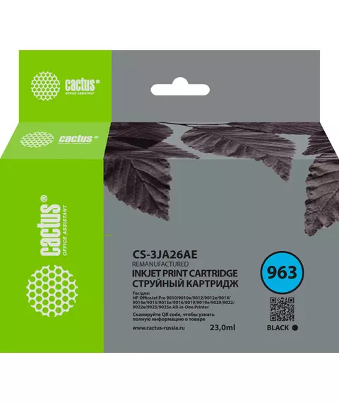 Картридж струйный Cactus CS-3JA26AE 963 черный пигментный (23мл) для HP OfficeJet 9010/9012/9013/9014/ 9015/9016/9019/9020/9025 с чипом