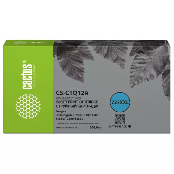 Картридж струйный Cactus CS-C1Q12A №727 черный (300мл) для HP Designjet T920/T930/T1500/T1530