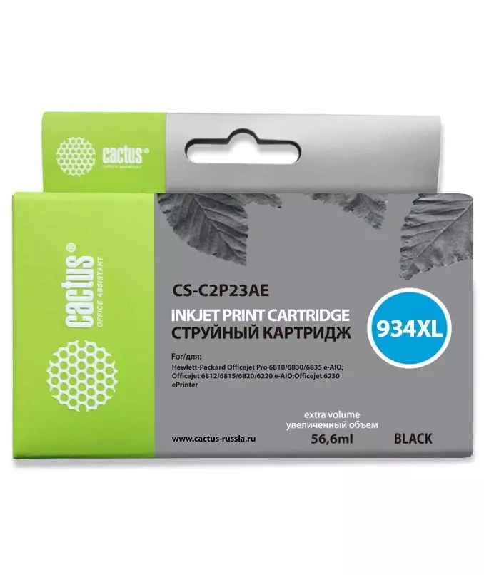 Картридж струйный Cactus CS-C2P23AE №934XL черный (56.6мл) для HP OJ Pro 6230/6830 с чипом