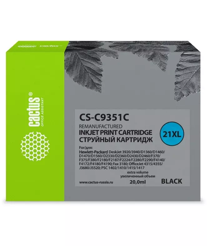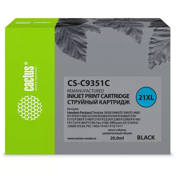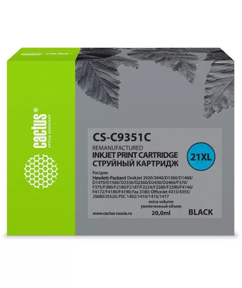 Картридж струйный Cactus CS-C9351C черный 20мл для DJ 3920/3940 D1360 D1460 D1470 D1560 D2330 D2360 с чипом