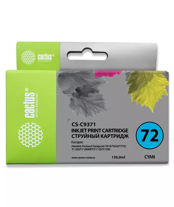 Картридж струйный Cactus CS-C9371 №72 фото голубой (130мл) для HP DJ T610/T620/T770/T1100/T1100/T1120/T1200 с чипом