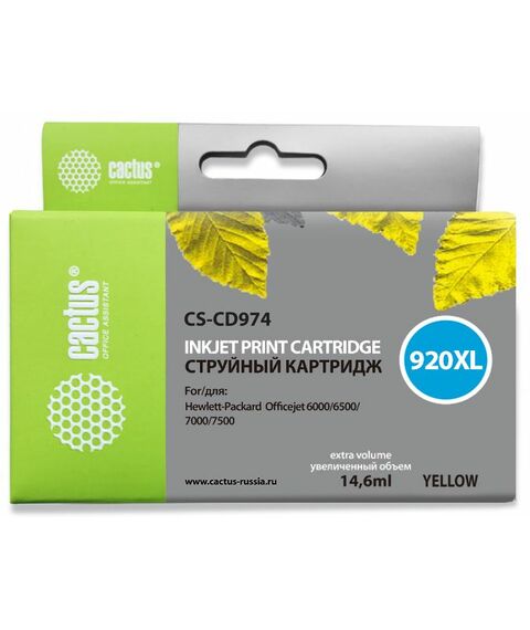 Картридж струйный Cactus CS-CD974 №920XL желтый (14.6мл) для HP DJ 6000/6500/7000/7500 с чипом