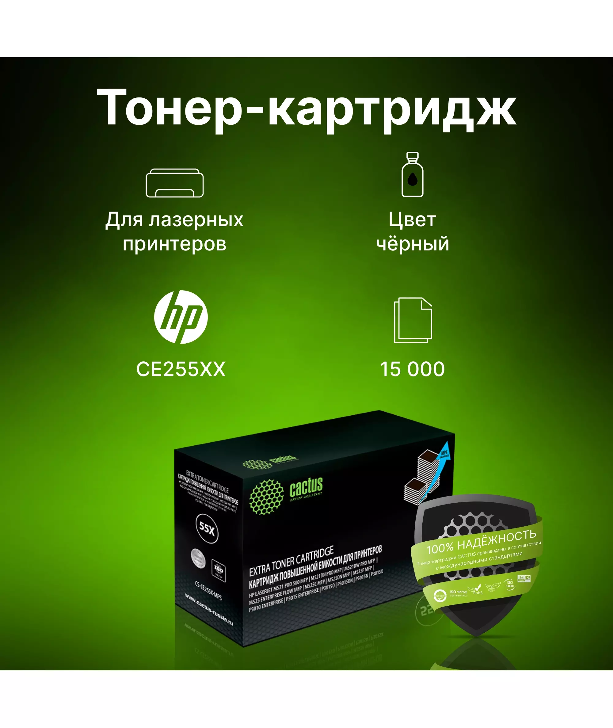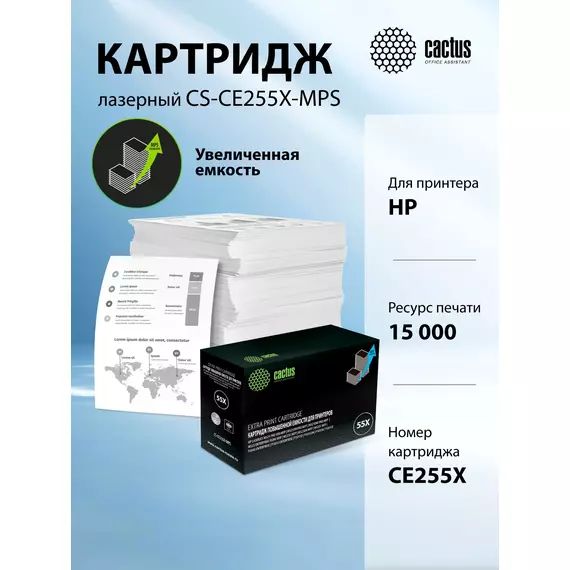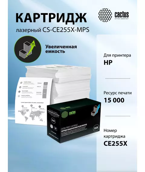Картридж лазерный Cactus CS-CE255X-MPS черный (15000стр.) для HP LJ P3015