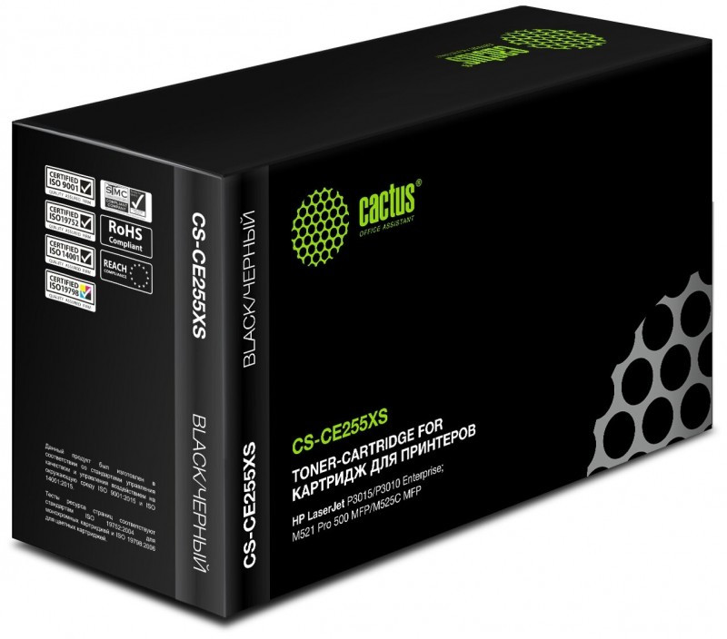 Картридж Cactus CS-CE255XS для HP LJ P3015, 12500 стр., черный
