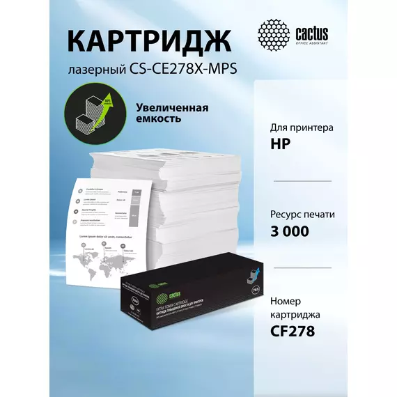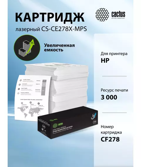 Картридж лазерный Cactus CS-CE278X-MPS CF278X черный 3000стр. для LJ P1566/P1606w