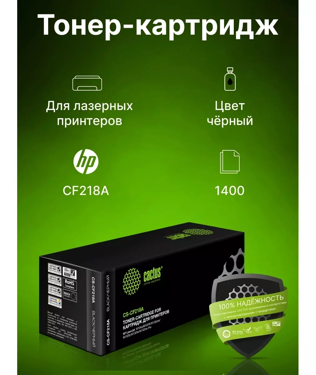 Картридж лазерный Cactus CS-CF218A CF218A черный (1400стр.) для HP LJ M104a/M104w/M132a/ M132fn/M132fw/M132nw