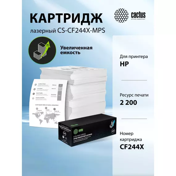 Картридж лазерный Cactus CS-CF244X-MPS CF244XX черный (2200стр.) для HP LJ M15 Pro/ M16 Pro/M28w Pro MFP с чипом