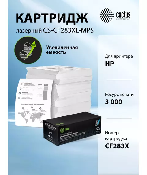 Картридж лазерный Cactus CS-CF283XL-MPS CF283X черный (3000стр.) для HP LJ Pro M225dn/M201/M202