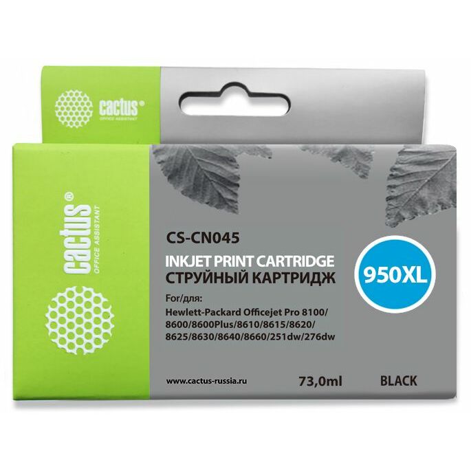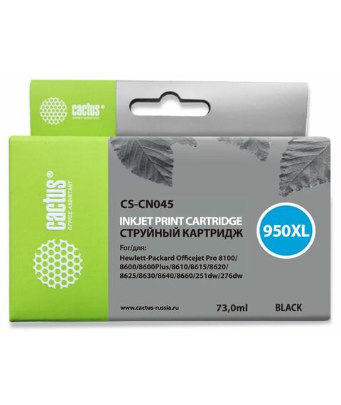 Картридж струйный черный пигментный Cactus CS-CN045 №950XL черный пигментный (73мл) для HP DJ Pro 8100/8600 с чипом