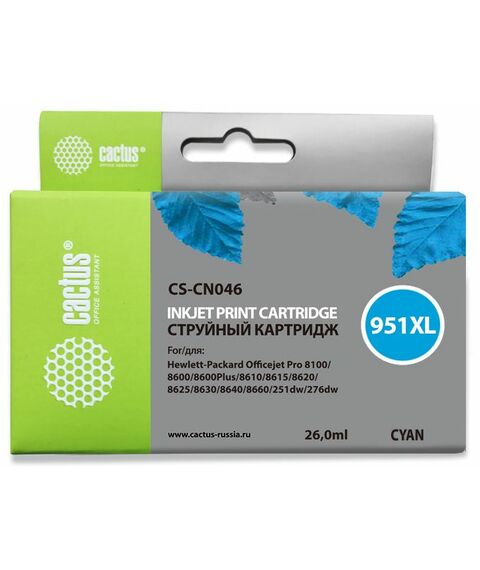 Картридж струйный Cactus CS-CN046 №951XL голубой (26мл) для HP DJ Pro 8100/8600 с чипом