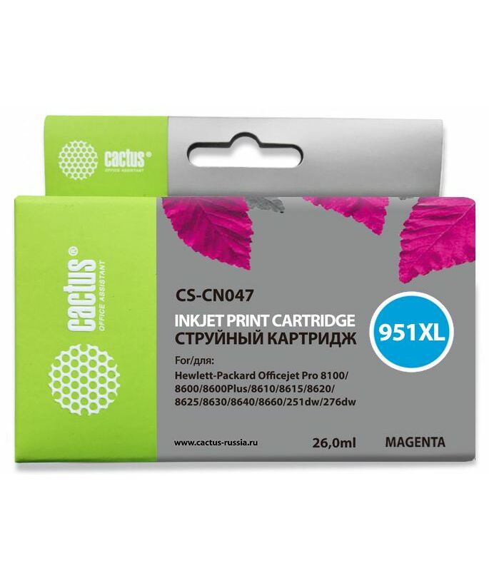 Картридж струйный Cactus CS-CN047 №951XL пурпурный (26мл) для HP DJ Pro 8100/8600 с чипом