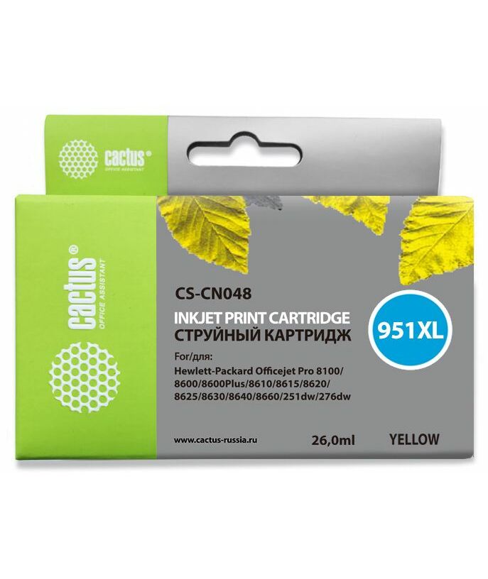 Картридж струйный Cactus CS-CN048 №951XL желтый (26мл) для HP DJ Pro 8100/8600 с чипом