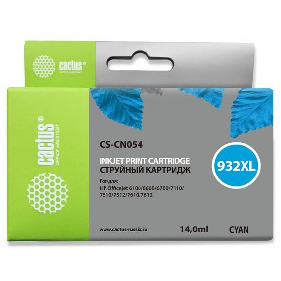 Картридж струйный Cactus CS-CN054 №933XL голубой (14мл) для HP DJ 6600 с чипом