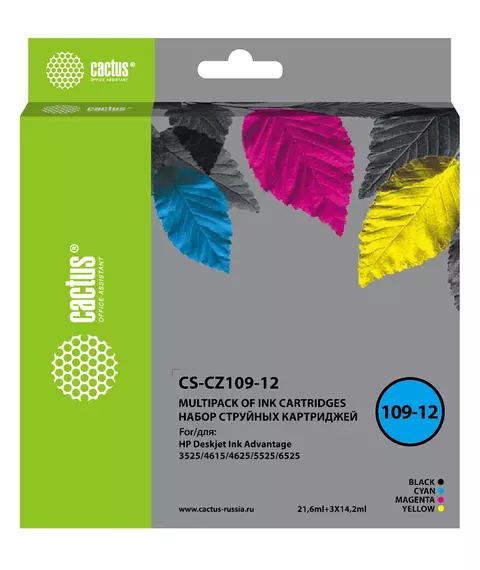 Картридж струйный Cactus CS-CZ109-12 черный/голубой/желтый/пурпурный набор (64.2мл) для HP DJ IA 3525/5525/4525 с чипом