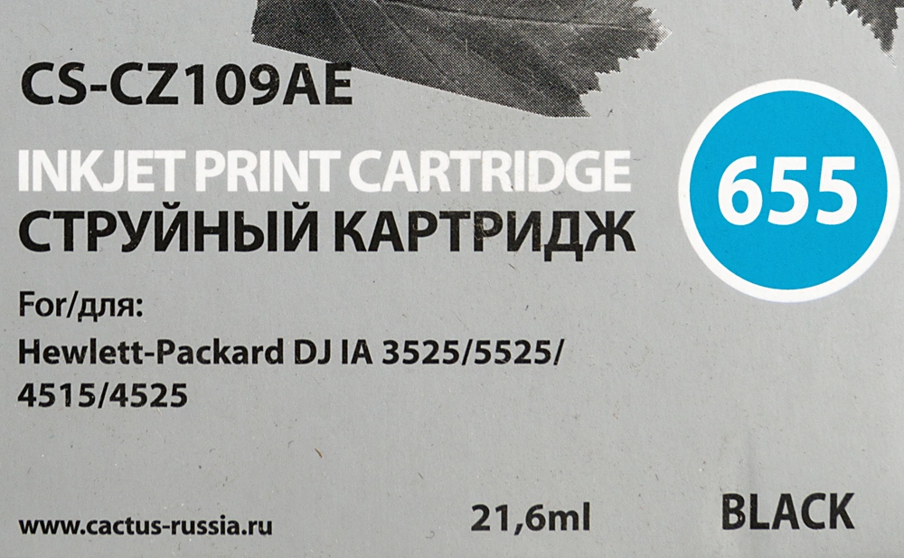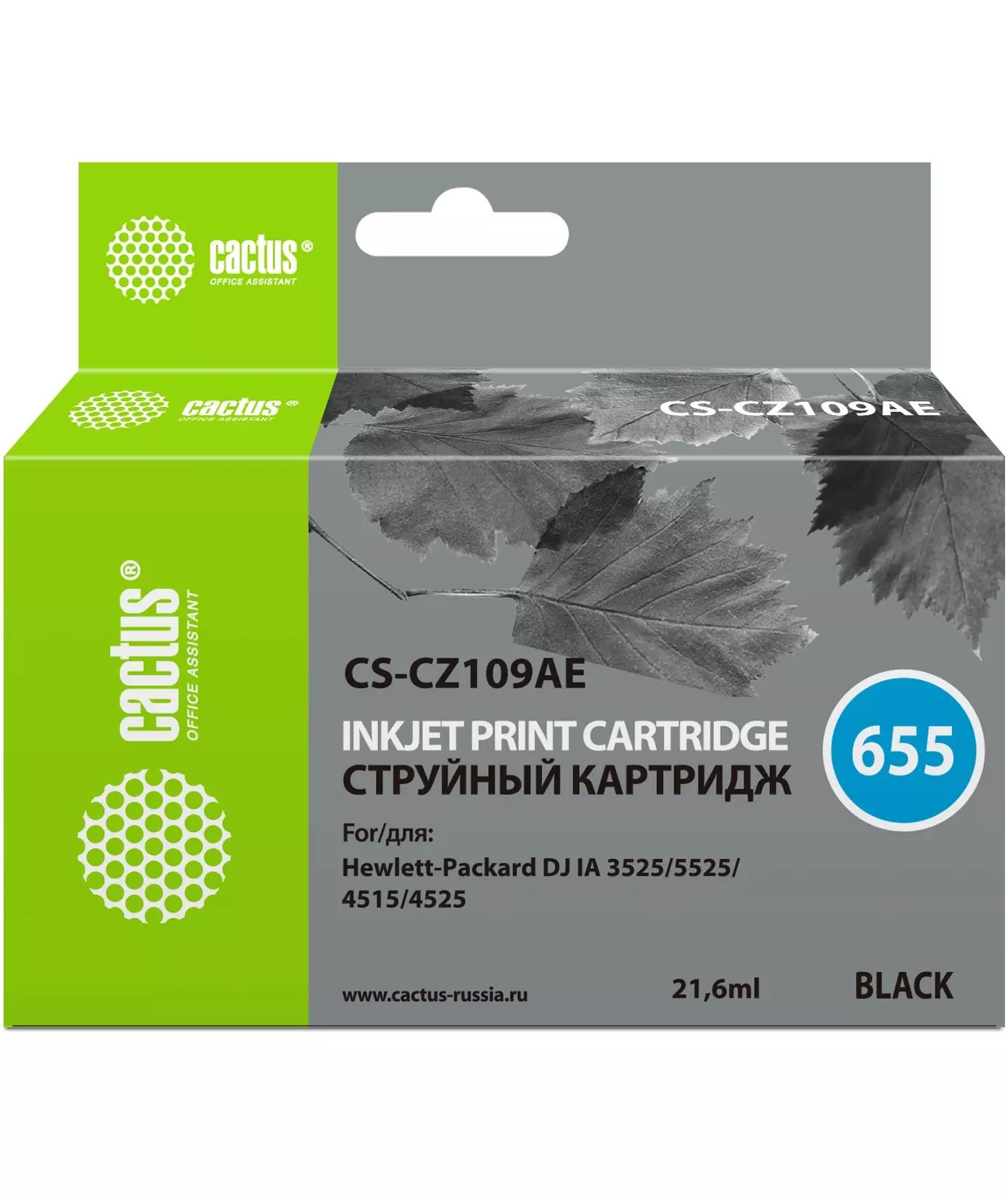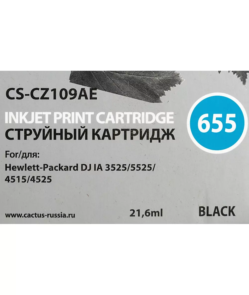 Картридж струйный Cactus CS-CZ109AE №655 черный пигментный (21.6мл) для HP DJ IA 3525/5525/4525 с чипом