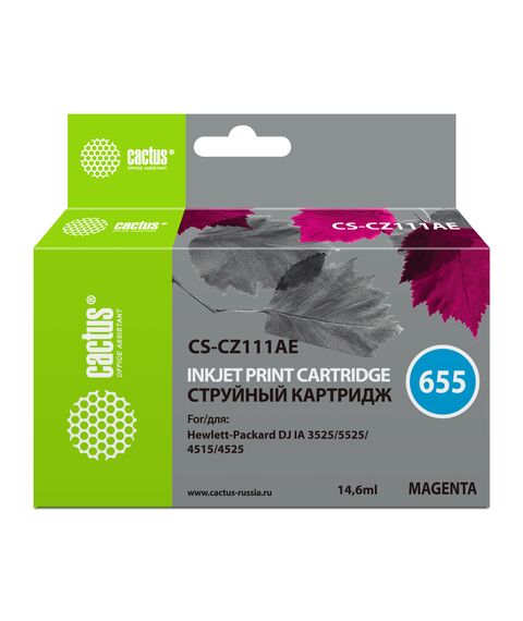 Картридж струйный Cactus CS-CZ111AE №655 пурпурный (14.6мл) для HP DJ IA 3525/5525/4525 с чипом