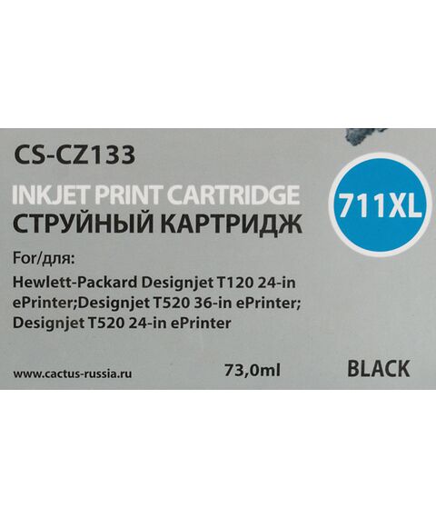 Картридж струйный Cactus CS-CZ133 №711 черный пигментный 73мл для HP DJ T120/T520/530 с чипом