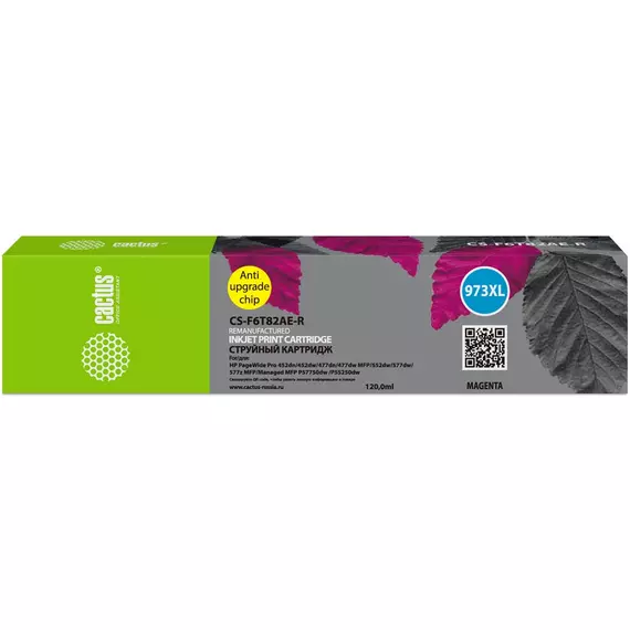 Картридж струйный пурпурный Cactus CS-F6T82AE-R 7000стр, 120мл, для HP PageWide Pro 452dw/477dw, с чипом
