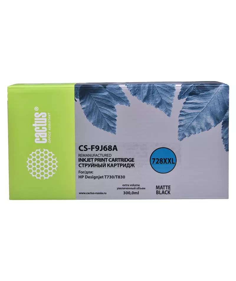 Картридж струйный Cactus CS-F9J68A 728XXL черный матовый (300мл) для HP DJ T730/T830