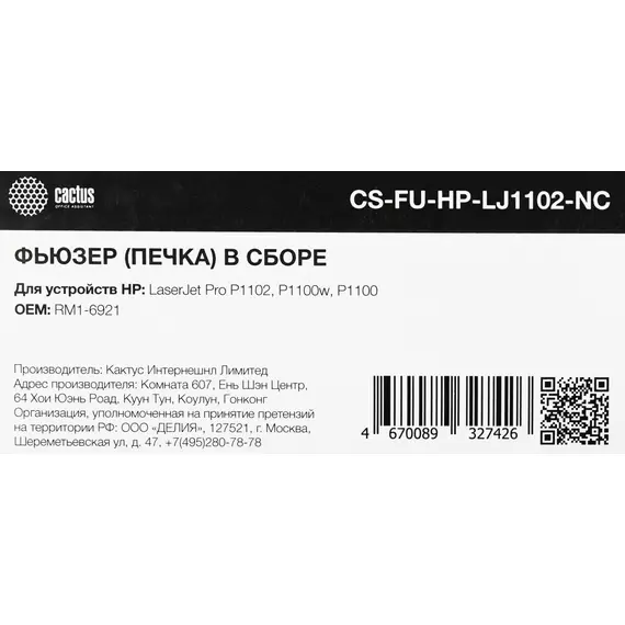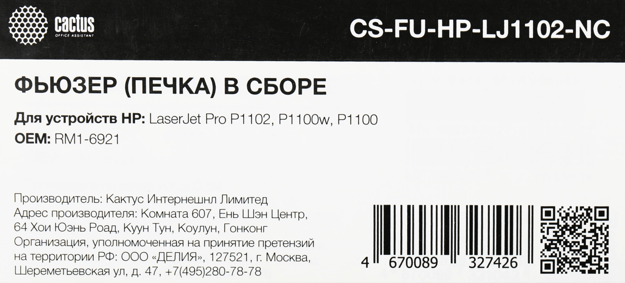 Печка в сборе Cactus CS-FU-HP-LJ1102-NC (RM1-6921/RM2-4760) (новая) для HP LJ Pro P1102 Canon LBP-6000/6020
