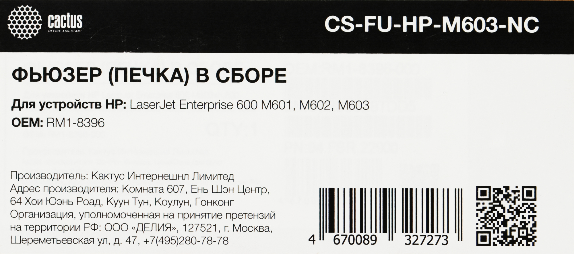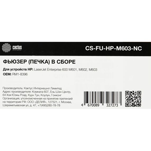 Печка в сборе Cactus CS-FU-HP-M603-NC (RM1-8396) (новая) для HP LJ Ent 600 M601/M602/M603