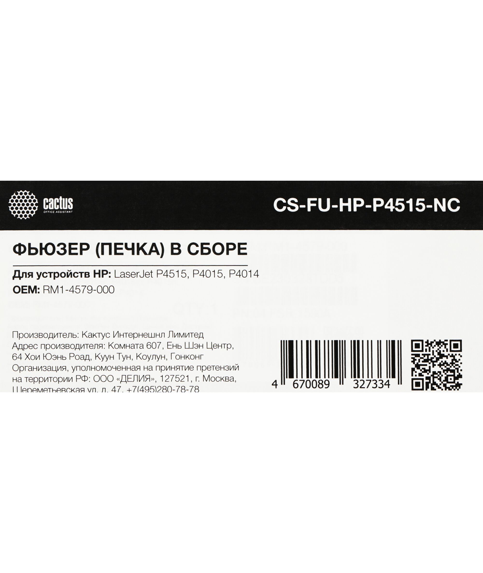 Печка в сборе Cactus CS-FU-HP-P4515-NC (RM1-4579/CB506-67902) (новая) для HP LJ P4014/P4015/P4515