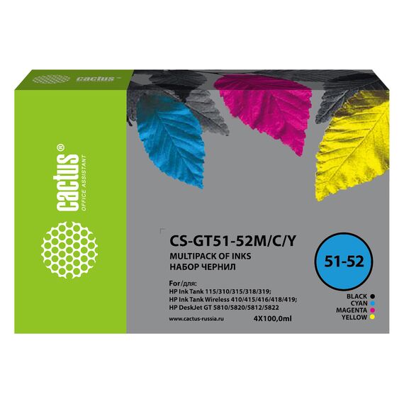 Чернила Cactus CS-GT51-52M/C/Y многоцветный набор 4x100мл для DeskJet GT 5810/5820/5812/5822