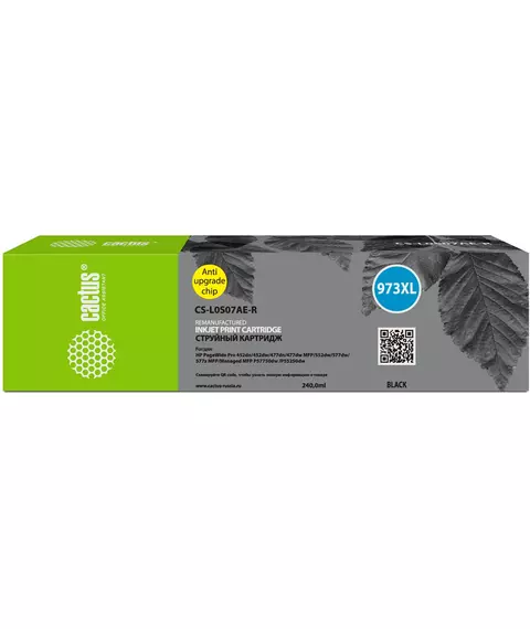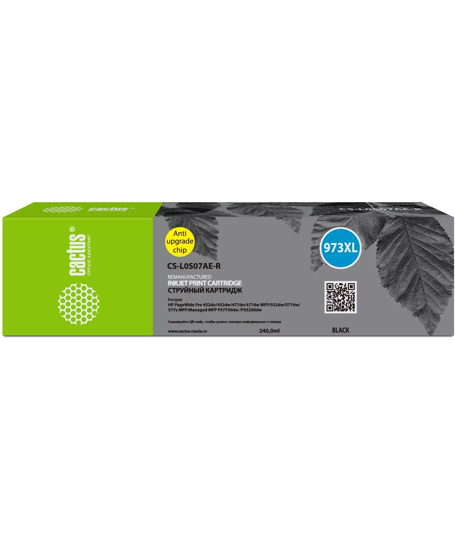 Картридж струйный Cactus CS-L0S07AE-R 973XL черный 10000стр 240мл для HP PageWide Pro 452dw/477dw с чипом