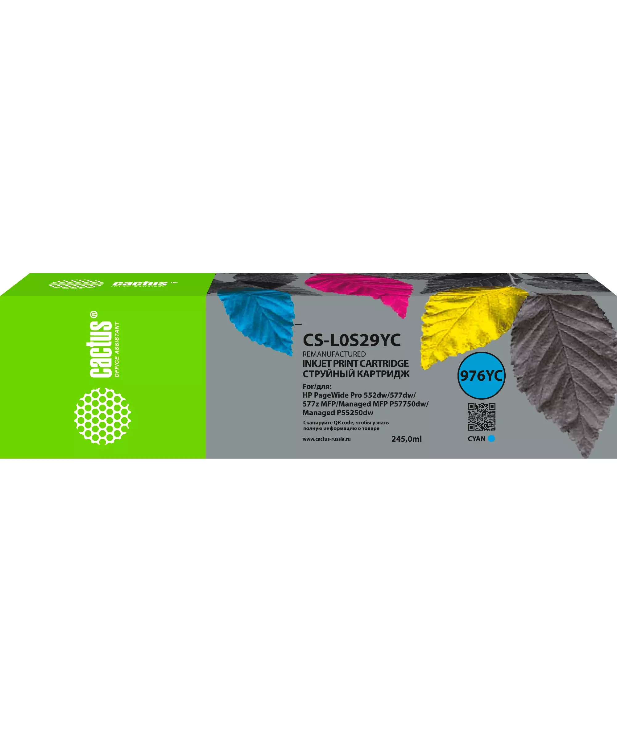 Картридж струйный Cactus CS-L0S29YC 976YC голубой (245мл) для HP PageWide P55250dw/P57750dw