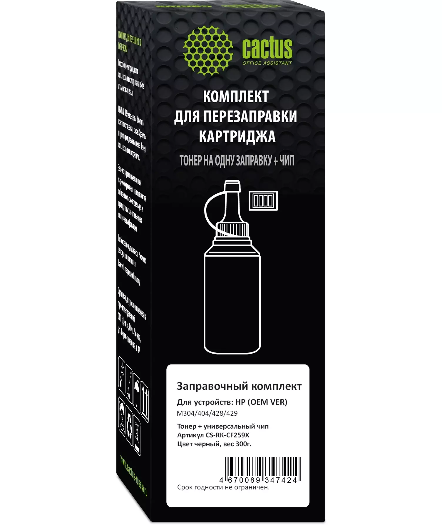 Тонер Cactus CS-RK-CF259X черный флакон 300гр. (в компл.:чип) для принтера HP (OEM VER) M304/404/428/429