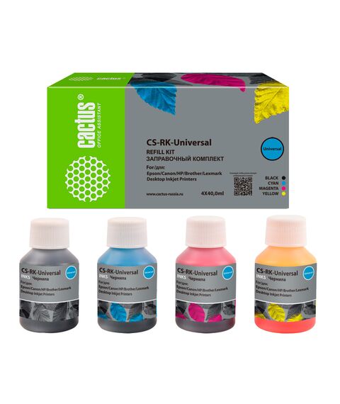Заправочный набор Cactus CS-RK-UNIVERSAL голубой/пурпурный/желтый/черный набор 4x40мл для HP/Lexmark/Canon