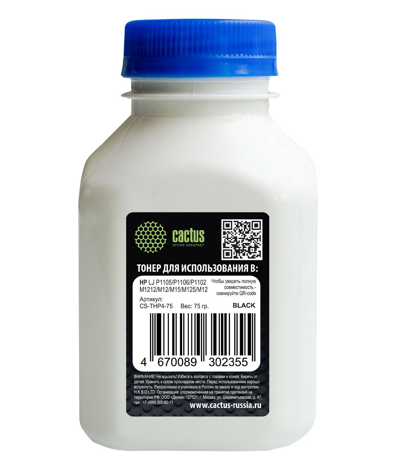 Тонер Cactus CS-THP4-75 черный флакон 75гр. для принтера CB436A, CE278A, CE285A, CF283A, CF244A, CF283X