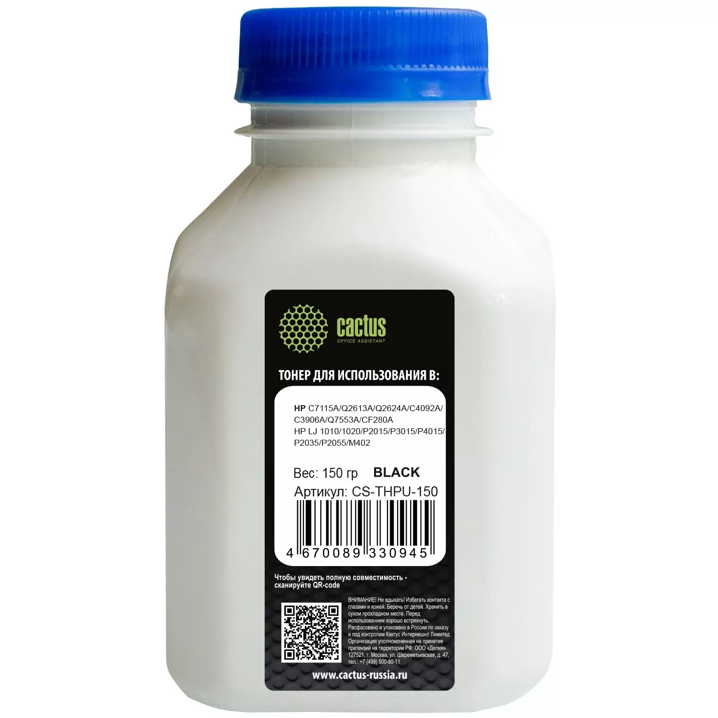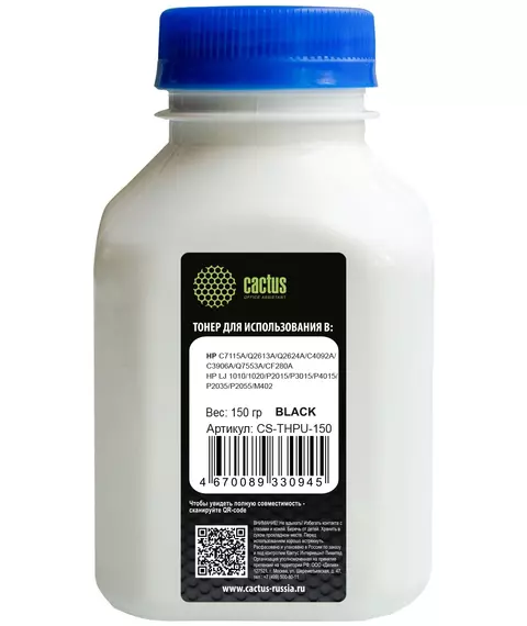 Тонер флакон Cactus CS-THPU-150 черный 150гр для принтера HP Universal Q2612A/Q5949A/CE505A/7115/Q6511/7516/Q4092