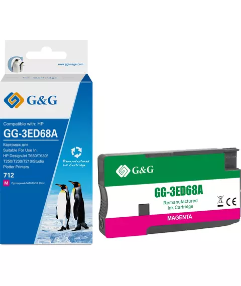 Картридж струйный G&G GG-3ED68A 712 пурпурный (29 мл) для HP DesignJet T650/T630/T250/T230/T210/Studio Plotter Printers